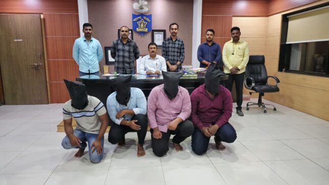 त्यानुसार पथकाने लागलीच बातमीतील नमुद ठिकाणी सिध्दटेक,ता. कर्जत येथे जावुन आरोपीचा शोध घेतला बातमीतील वर्णना प्रमाणे संशयीत इसम मिळुन आल्याने त्यास शिताफीने ताब्यात घेतले. ताब्यात घेतलेल्या संशयीतास पोलीस पथकाची ओळख सांगुन त्याचे नाव गांव विचारले असता त्याने त्याचे नाव किशोर सोमनाथ सांगळे रा.सिध्दटेक,ता.कर्जत असे असल्याचे सांगितले.त्याचे कडे वर नमुद गुन्ह्याचे अनुषंगाने विचारपुस केली असता त्याने त्याचे इतर साथीदार नामे अमोल भोसले,माऊली ऊर्फ ज्ञानेश्वर उबाळे यांचे सांगणेवरुन त्यांचे सोबत मिळुन सागर देमुंडे, प्रतिक ऊर्फ सनि पवार व महेंद्र ऊर्फ गोट्या गोंडसे याचे सोबत मिळुन केला असल्याचे सांगितले.ताब्यातील किशोर सोमनाथ सांगळे याने सांगितल्या नुसार त्याचे इतर साथीदारांचा शोध घेतला असता आरोपी नामे सागर चिमाजी देमुंडे,प्रतिक ऊर्फ सनि राजेंद्र पवार,महेंद्र ऊर्फ गोट्या अरुण गोंडसे यांचा शोध घेतला असता ते मिळुन आल्याने त्यांचे कडे वर नमुद गुन्ह्याचे अनुषंगाने विचारपुस केली असता आरोपींनी गुन्हा केल्याचे सांगितल्याने त्यांना ताब्यात घेतले. आरोपींचे साथीदार नामे अमोल भोसले,माऊली ऊर्फ ज्ञानेश्वर उबाळे (फरार) यांचा शोध घेतला परंतु ते मिळुन आले नाहीत. ताब्यात घेतलेल्या चारही आरोपींना गुन्ह्याचे तपासकामी मिरजगांव पोलीस स्टेशन येथे हजर केले आहे.