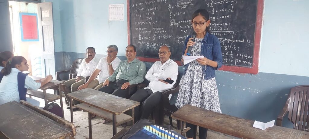 “पर्यावरण संवर्धन” या विषयावर कुमारी निर्मिती संघर्ष साळवे इयत्ता ११ वी सायन्स हीने निरोगी व प्रदूषण मुक्त जीवन जगण्यासाठी आपण जवळच्या प्रवासासाठी ई-बाईक व सायकल वापरणे गरजेचे असून,निसर्ग जसा आहे तसाच ठेवला पाहिजे,आपली मर्जी जर निसर्गावर लादली तर आपले नुकसानच होईल असे मत व्यक्त केले.