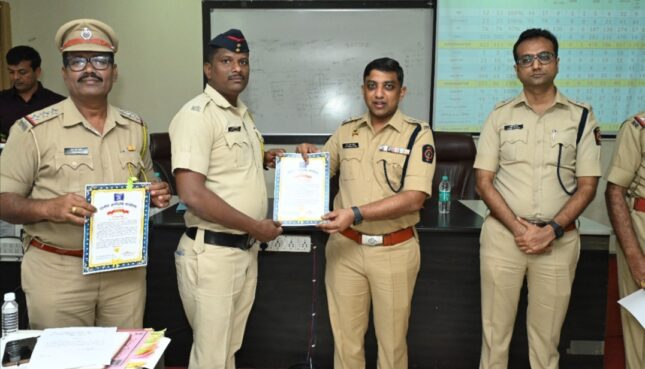 जालना प्रतिनिधी (दि.१२ ऑगस्ट):-जालना पोलीस दलातील व कदीम पोलीस ठाण्यातील कर्तव्यदक्ष कर्मचारी श्री.दिलीप बी. गायकवाड यांना जालना जिल्हा पोलीस अधीक्षक अजय कुमार बंसल यांच्या हस्ते प्रशस्तीपत्रक देऊन सन्मानित करण्यात आले.