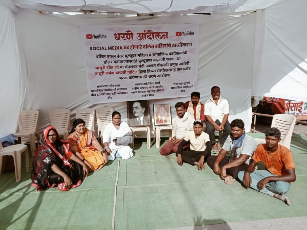 वणी प्रतिनिधी (दि.१५ ऑगस्ट):-दलित एकल महिला व सामाजिक कार्यकर्त्यांची झटकीपट डॉलर (पैसे) कमावण्यासाठी युट्युबवर बदनामी करणाऱ्या ‘माधुरी टॉक शो’ या यूट्यूब चैनलवर बंदी आणून नाशिक येथील ‘त्या आरोपी महिलेस’ व तिच्या ‘साथीदारांना’ ताबडतोब अटक करण्यात यावी या मागणीसाठी दि.१३ ऑगस्ट २०२४ रोजी वणी तहसील येथे धरणे आंदोलन करण्यात आले.