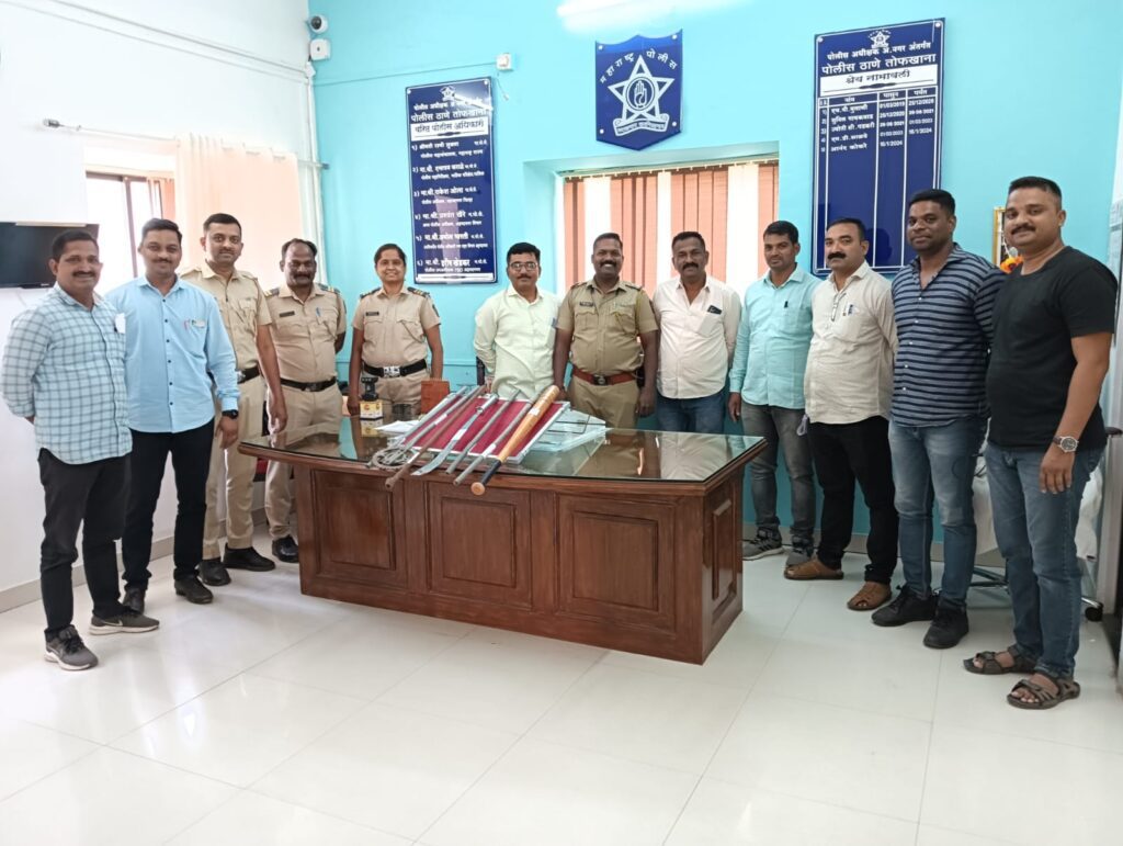 सदर बातमी मिळताच पोलीस निरीक्षक स्वत: तात्काळ सोनानगर चौकात हजर होवुन तोफखाना पोलीस स्टेशनचे गुन्हे शोध पथकाचे अधिकारी व अंमलदार यांच्यासह बातमी मिळाले प्रमाणे उपनगरराजा मित्र मंडळाचे गणेश मुर्ती ठेवलेल्या ट्रॉलीची पंचाचे समक्ष झडती घेतली असता ट्रॉलीमध्ये एक लोखंडी कोयता,तीन लोखंडी पाईप,एक कटावनी व एक लोखंडी पाईपला सायकलचा गियर लावुन केलेले घातक शस्त्रासह एक बेस बॉल खेळण्याचा दांडा एका सफेद गोणीमध्ये लपवुन ठेवले असल्याचे मिळून आल्याने सदरचे हत्यारे पोलीस स्टाफने जप्त करण्यात आले.