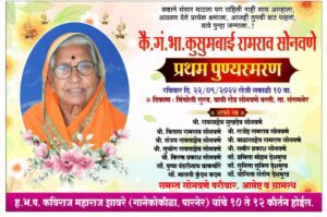 संगमनेर तालुका (प्रतिनिधी/राजेंद्र मेढे):-अहमदनगर जिल्ह्यात संगमनेर तालुक्यातले चिंचोली गुरव गावचे सरपंच विलास रामराव सोनवणे यांच्या मातोश्री स्व.कुसुमबाई रामराव सोनवणे यांचे प्रथम पुण्यस्मरण कार्यक्रमाचे आयोजन केले होते.