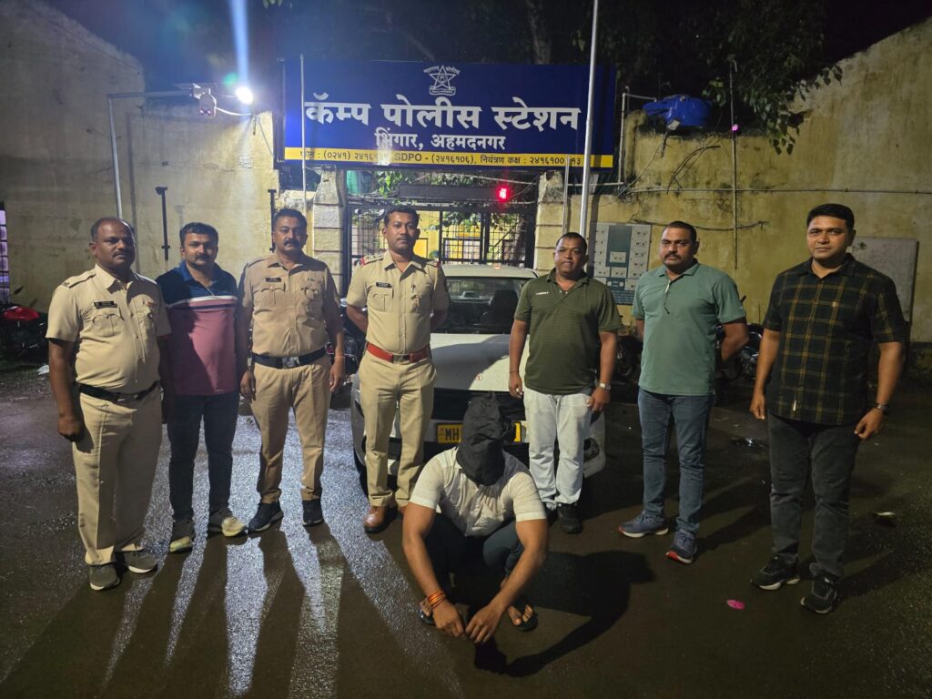 या घटनेबात कॅम्प पोलीस स्टेशनचे सहायक पोलीस निरक्षक जगदिश मुलगीर यांना गोपनिय बातमीदाराकडुन मिळालेल्या माहीतीच्या आधारे तपास पथकातील अंमलदार यांनी तांत्रिक विश्लेषणा व्दारे तपास करुन सदर गुन्हयातील स्वीफ्ट डिझायर कार व आरोपी नामे तुषार बाळासाहेब कोल्हे (रा.नागेश्वर गल्ली पारनेर,जिल्हा अहमदनगर) यास स्टेट बँक चौक येथुन रोडने जात असताना त्यास थांबवले असता तो पळून जाण्याच्या तयारीत असताना स्वीफ्ट डिझायर कार व आरोपीस शिताफीने ताब्यात घेतले.