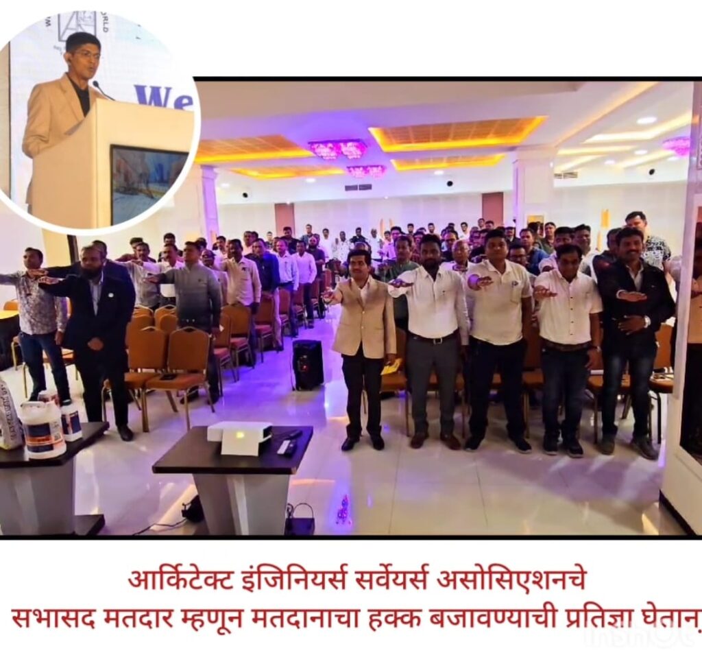 अहिल्यानगर प्रतिनिधी:-जिल्हाधिकारी तथा जिल्हा निवडणूक अधिकारी अहिल्यानगर स्विप समिती-यांच्या अहवानास सकारात्मक प्रतिसाद देत आर्किटेक्ट इंजिनियर्स सर्वेयर्स असोसिएशनच्या २०० पेक्षा जास्त सभासदांना मतदार म्हणून मतदानाचा हक्क बजावण्याची प्रतिज्ञा घेतली.हि प्रतिज्ञा संचालक इंजी.यश प्रमोद शहा यांनी दिली.