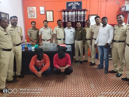 नगर प्रतिनिधी (दि.२६ जानेवारी):-दि.26/01/2023 रोजी भिंगार कॅम्प पोलीस स्टेशनचेचे प्रभार सपोनी/श्री. शिशिरकुमार देशमुख यांना गुप्त बातमीदारा मार्फत बातमी मिळाली कि,बाराबाभळी परीसरात नगर पाथर्डी रोडवर निळे रंगाचे कारमध्ये दोन इसम हे गांजाची विक्री करण्यासाठी येणार आहेत अशी खात्रीलायक बातमी मिळाल्याने श्री.संपतराव शिंदे पोलीस निरीक्षक कोतवाली पोलीस स्टेशन यांचे मार्गदर्शनाखाली सापळा लावून थांबलो असता नमूद कार ही बातमी प्रमाणे संशयितरित्या येत असल्याने तीला हात दाखवून थांबवून रस्त्याचे बाजूला घेऊन त्यातील इसमांना गाडीचे खाली उतरण्यास सांगून सदर इसमांना त्यांचे नाव व गाव विचारले असता त्यांनी नाव 1)वसीम मुजाहीद शेख वय 34 वर्षे रा.बेलेश्वर कॉलनी,विजय लाईन चौक भिंगार ता.जि.अहमदनगर 2)अजय उर्फ सोनू रामचंद मुदलीयार वय 32 वर्षे रा.सिटीझन कॉलनी,विजय लाईन चौक,भिंगार ता.जि.अहमदनगर असे असल्याचे सांगून त्यांना त्यांचे ताब्यातील कार नं.एम.एच.12जे सी 8471 हीची झडती घेण्याचा उद्देश समजावून सांगून सदर कारची पंचासमक्ष झडती घेतली असता सदर कारचे पाठी मागील डिक्कीमध्ये एका पांढरे रंगाचे तळवटामधील एका प्लॅस्टीक पिशवीमध्ये हिरवट रंगाचा ओला सुका गांजा गुंढाळलेल्या स्थितीमध्ये मिळून आला आहे.त्यांची पंचासमक्ष अंगझडती घेतली असता त्यांचे कब्जात 25,000/रूकिं.चा एका 4 किलो 955 ग्रॅम वजनाचा हिरवट रंगाचा उग्र वासाचा ओला सुका गांजा प्रतिकिलो 5000/- रु प्रमाणे तसेच 65,000/- रू किं चे दोन ॲन्ड्रॉईड मोबाईल व 5,00,000/- रू किं ची एक मारूती सुझुकी कंपनीची स्विफ्ट कंपनीची निळे रंगाची चारचाकी कार तिचा नं.एम. एच.12 जे.सी.8471 असा नंबर असलेली कार मिळून आल्याने पोहेकॉ/अजय नारायण नगरे यांनी दिलेल्या फिर्यादीवरून भिंगार कॅम्प पो स्टे येथे गुरनं 57/2023 एन.डी.पी.एस.कायदा कलम 8(क),20(ब) प्रमाणे रजि.दाखल करण्यात आला असून पुढील तपास सपोनि.श्री.शिशिरकुमार देशमुख हे करीत आहेत.सदरची कार्यवाही पोलीस अधिक्षक श्री.राकेश ओला,अपर पोलीस अधीक्षकश्री.प्रशांत खैरे,उपविभागीय पोलीस अधिकारी श्री.अनिल कातकडे,पोलिस निरीक्षक श्री.संपतराव शिंदे कोतवाली पोलिस स्टेशन यांचे मार्गदर्शनाखाली भिंगार कॅम्प पो.स्टे.चे सहाय्यक पोलीस निरीक्षक शिशिरकुमार देशमुख,पोसई/किरण साळुंके,सफौ/रमेश वराट,सफौ/कैलास सोनार,सफौ/राजु वैरागर,पोहेकाँ/अजय नगरे,पोहेकाँ/ गोविंद गोल्हार,पोहेकाँ/विलास गारूडकर,पोहेकाँ/ रघूनाथ कुलांगे,पोना/राहुल द्वारके,पोना/सचिन धोंडे,पोना/ संतोष आडसुळ, चापोकाँ/अरूण मोरे, चापोकाँ/समीर शेख,होमगार्ड/साबीर शेख यांनी सदरची कारवाई केली आहे.