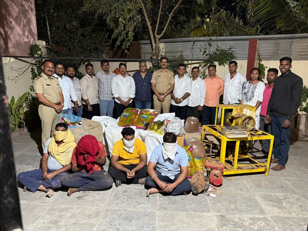 एमआयडीसी पोलीस ठाण्याचे सहाय्यक पोलीस निरीक्षक माणिक चौधरी यांना गुप्त बातमीदारामार्फत माहिती मिळाली की,राजेंद्र शामराव वराट,आनंद तात्या खैरे (रा. निंबळक) हे महाराष्ट्र राज्यात प्रतिबंधीत असलेल्या तंबाखूजन्य पदार्थापासून मावा तयार करून त्याची चोरून विक्री करत आहेत.अशी खात्रीशीर माहिती मिळाल्याने सपोनी/ चौधरी यांनी अन्न औषध प्रशासनाला याची माहिती देऊन त्यांच्या सोबत निंबळक येथे जाऊन छापा टाकला असता तेथे काही इसम मावा,विमल,सुगंधित तंबाखू विकताना आढळून आले.त्यामुळे राजेंद्र शामराव वराट,आनंद तात्या खैरे,अमोल धोंडीराम इंगोले,महेश भीमराव घोलप सर्व (रा.निंबळक तालुका जिल्हा अहिल्यानगर) यांच्या विरुद्ध एमआयडीसी पोलीस ठाण्यात गुन्हा रजिस्टर नंबर 86/2025 भारतीय न्याय संहिता कलम 223,274,275,123,(3)(5) सह अन्नसुरक्षा अधिनियम कलम 59 प्रमाणे गुन्हा दाखल करण्यात आला असून पुढील तपास पोसई/विनोद परदेशी हे करत आहे.