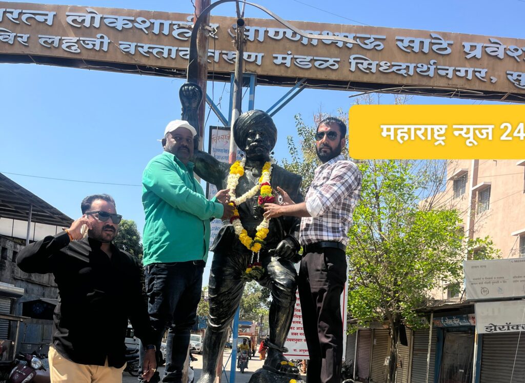 नगर प्रतिनिधी (सागर साळवे):-स्वातंत्र्य संग्रामातील शुरवीर महायोद्धे आद्यक्रांतीगुरु लहुजी वस्ताद साळवे यांच्या स्मृतीदिनानिमित्त सिध्दार्थनगर येथील त्यांच्या पुतळ्यास साहित्यरत्न फाउंडेशनच्या वतीने पुष्पहार अर्पण करून अभिवादन करण्यात आले.यावेळी साहित्यरत्न फाऊंडेशनचे संस्थापक अध्यक्ष पै.अंकुश मोहिते यांच्यासह दीपक मोहिते,अनिल वाघमारे,सुनील सकट,दिपक सरोदे,पप्पू पाटिल आदिसह सामाजिक कार्यकर्ते उपस्थित होते.