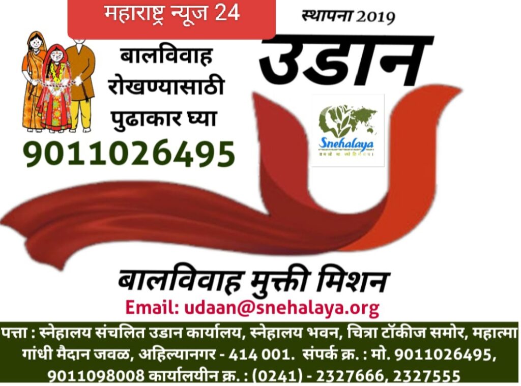 अहिल्यानगर (दि.19 फेब्रुवारी):- राहता तालुक्यातील एका गावात १६ फेब्रुवारी रोजी अवघ्या १६ वर्षीय मुलीच्या बालविवाहाचा प्रयत्न सुरू असल्याची माहिती स्नेहालय उडान हेल्पलाइनला मिळाली आणि त्यानंतर अवघ्या काही तासांत हा विवाह रोखण्यात आला.हा विवाह संगमनेर तालुक्यातील २६ वर्षीय युवकासोबत होणार होता.