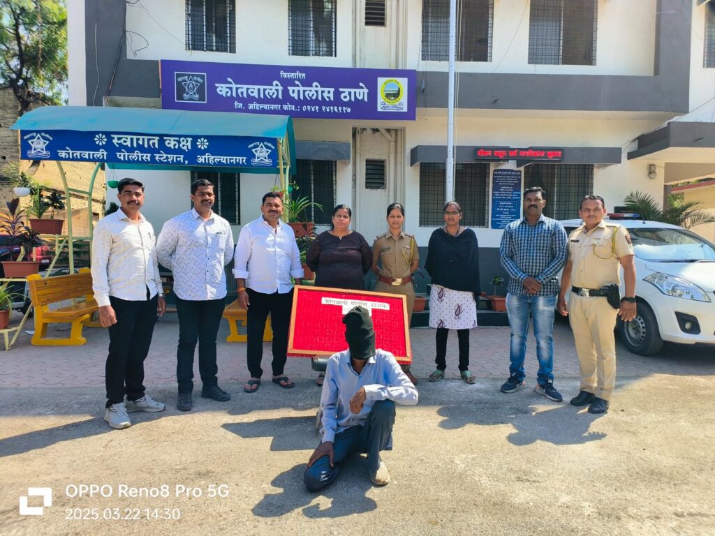 सदरची कारवाई जिल्हा पोलीस अधीक्षक राकेश ओला, अप्पर पोलीस अधीक्षक प्रशांत खैरे,उपविभागीय पोलीस अधिकारी नगर शहर भाग अमोल भारती,कोतवाली पोलीस ठाण्याचे पोलीस निरीक्षक प्रताप दराडे,गुन्हे शोध पथकाच्या सहाय्यक पोलीस निरीक्षक योगिता कोकाटे,पोलीस अंमलदार विशाल दळवी,संदीप पितळे,दीपक रोहकले,तानाजी पवार,सुरज कदम,शिरीष तरटे, दत्तात्रय कोतकर,राम हंडाळ, सचिन लोळगे,मपोकॉ.नागरे, दक्षिण मोबाईल सेलचे पोलीस अंमलदार राहुल गुंडू यांनी केली आहे.