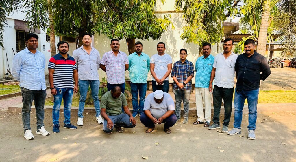 अहिल्यानगर (प्रतिनिधी):-अहिल्यानगर जिल्ह्यातुन 2 वर्षाकरीता हद्दपार केलेले 02 सराईत आरोपी लोणी येथून जेरबंद करण्यात स्थानिक गुन्हे शाखेच्या पथकाला यश आले आहे.अन्सार सत्त्तार चौधरी,रा.नेवासा, जि.अहिल्यानगर व नदीम सत्तार चौधरी,रा.नेवासा, जि.अहिल्यानगर असे पकडलेल्या आरोपींचे नावे आहे. वरिष्ठ पोलीस अधिकाऱ्यांच्या सूचनेनुसार स्थानिक गुन्हे शाखेचे पथक लोणी पोलीस स्टेशन हद्दीत फरार पाहिजे आरोपी व हद्दपार इसमांचा शोध घेत असताना बातमीदारामार्फत माहिती मिळाली की वरील हद्दपार केलेले इसम हे ममदापूर, ता.राहाता गावामध्ये आहेत.पथकाने मिळालेल्या माहितीवरून ममदापूर गावामध्ये हद्दपार इसमांचा शोध घेऊन ताब्यात घेतले.