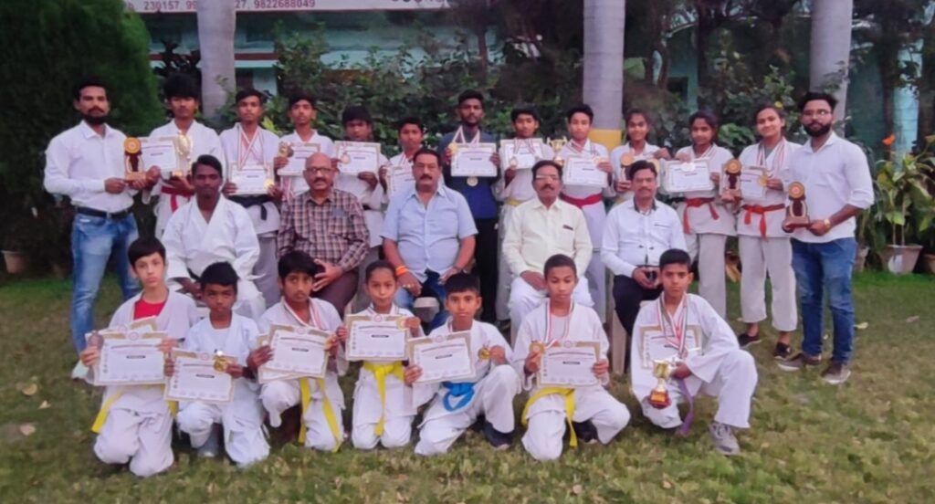 सेलू/वर्धा प्रतिनिधी (गजानन जिकार):-कोणतेही कार्य पूर्ण करण्यासाठी कृतीशीलता व तत्परतेची गरज असते कराटे सारख्या खेळातून व्यक्तिमत्व विकास होत असून एकात्मता, बंधुता हे गुण मुलांच्या अंगी येतात असे मौलिक विचार स्पोर्ट कराटे असोसिएशन वर्धा जिल्ह्याचे संरक्षक इमरान राही यांनी व्यक्त केले. 30 जानेवारी रोजी सत्येश्वर लॉन बोरगाव मेघे येथे असोसिएशनचे विजेते खेळाडूंच्या अभिनंदन सोहळ्याप्रसंगी कार्यक्रमाचे अध्यक्ष म्हणून बोलत होते. याप्रसंगी संस्थेचे अध्यक्ष सतीश इखार,उपाध्यक्ष मोहन मोहिते,सचिव तथा स्पोर्ट शोतोकान कराटे डो असोसिएशन ऑफ इंडियाचे राष्ट्रीय अध्यक्ष सेन्साई मंगेश भोंगाडे,संस्थेचे क्रोषाध्यक्ष विजय सत्याम प्रामुख्याने मंचावर उपस्थित होते.गुणांची उत्पत्ती खेळातूनच होत असते ऊर्जा,उत्साह व उमंग हे गुण मनुष्यात असणे गरजेचे आहे. असे मत संस्थेचे अध्यक्ष सतीश इखार यांनी व्यक्त केले.प्रत्येकाने कुठला तरी खेळ खेळणे अनिवार्य आहे आणि खेळ खेळत असताना व स्पर्धेमध्ये आपले स्थान टिकवितांना खेळ हा खेळ भावनेतुनच खेळायला पाहिजे असे विचार सेन्साई मंगेश भोंगाडे यांनी प्रस्तावना करताना मांडले.सर्व पाहुण्यांच्या शुभहस्ते यवतमाळ जिल्ह्यातील वणी तालुक्यात नुकत्याच पार पडलेल्या स्पोर्ट शोतोकान कराटे डो असोसिएशन ऑफ इंडियाद्वारा आयोजित ओपन कराटे चॅम्पियनशिप मध्ये प्राविण्य प्राप्त ब्लॅक बेल्ट पुरुष गटात प्रथम कार्तिक भगत,ब्लॅक बेल्ट पुरुष गटात काता द्वितीय व कुमिते गटात तृतीय पियुष हावलादार, ब्लॅक बेल्ट महिला गटात तृतीय कल्याणी भोंगाडे,सब ज्युनिअर चॅम्पियनशिप कुमिते गटात प्रथम भार्गव खेवले,द्वितीय नैतिक सिंग, तृतीय दीक्षांत वासनिक,व रुजान बागमोरे,नैतिक आवारी,प्रथमेश ढाले,सौरभ लाखे, चैतन्य मोहरकर, आरुष रंगारी,रिशीत मिश्रा, पियुष सिंग,देवांशु लाखे, पलक लक्षणे,मानसी गोमासे, नेहा गोल्हर,पलक यादव, कवीश ठोंबरे,प्रियांक पुसाटे, शुभ्रा भगत यांना त्यांनी प्राप्त केलेले मेडल,ट्रॉफी व प्रमाणपत्र देऊन सन्मानित करण्यात आले.कार्यक्रमाचे संचालन सावंगी मेघे शाखाप्रमुख सेन्साई सुशांत जीवतोडे यांनी तर आभार असोसिएशनच्या चॅम्पियन टीमचे कॅप्टन सेन्साई कार्तिक यांनी आभार मानले.
