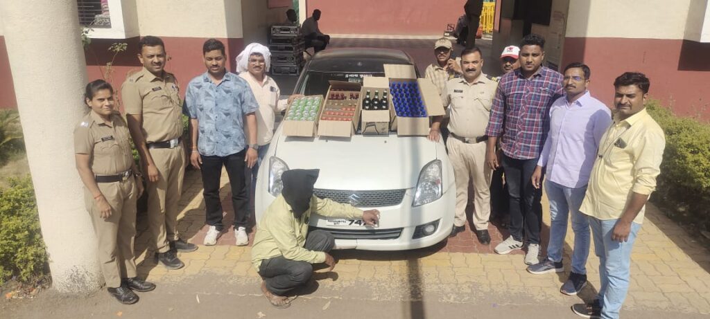 अहिल्यानगर (प्रतिनिधी):- नगर मनमाड रोडवरून आय टेन शोरूम समोर एका स्विफ्ट कार मधून विनापरवाना बेकायदा दारूची वाहतूक करणाऱ्या इसमास कारसह पकडून त्याच्या ताब्यातून 20 हजार 970 रू. किमतीची दारू तोफखाना पोलिसांनी हस्तगत केली आहे.ही कारवाई पोलिसांनी 16 एप्रिल रोजी केली असून आजिनाथ मुरलीधर आव्हाड (रा.पांगरमल तालुका जिल्हा अहिल्यानगर) असे पकडलेल्या आरोपीचे नाव असून त्याच्यावर महाराष्ट्र दारूबंदी कायदा कलम 65 अ,ई अन्वये गुन्हा दाखल करण्यात आला आहे.