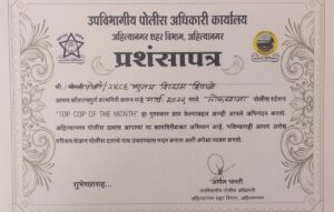 दिलेल्या प्रशंसांपत्रका म्हटले आहे की,अहिल्यानगर पोलीस दलास आपल्या या कामगिरी बाबत अभिमान आहे.भविष्यातही आपण असे परिश्रम घेऊन पोलीस दलाचे नाव उंचावण्यास मदत कराल अशी अपेक्षा व्यक्त करतो.यावेळी तोफखाना पोलीस ठाण्याचे पोलीस निरीक्षक श्री. आनंद कोकरे यांच्यासह मोठ्या संख्येने पोलीस कर्मचारी उपस्थित होते.
