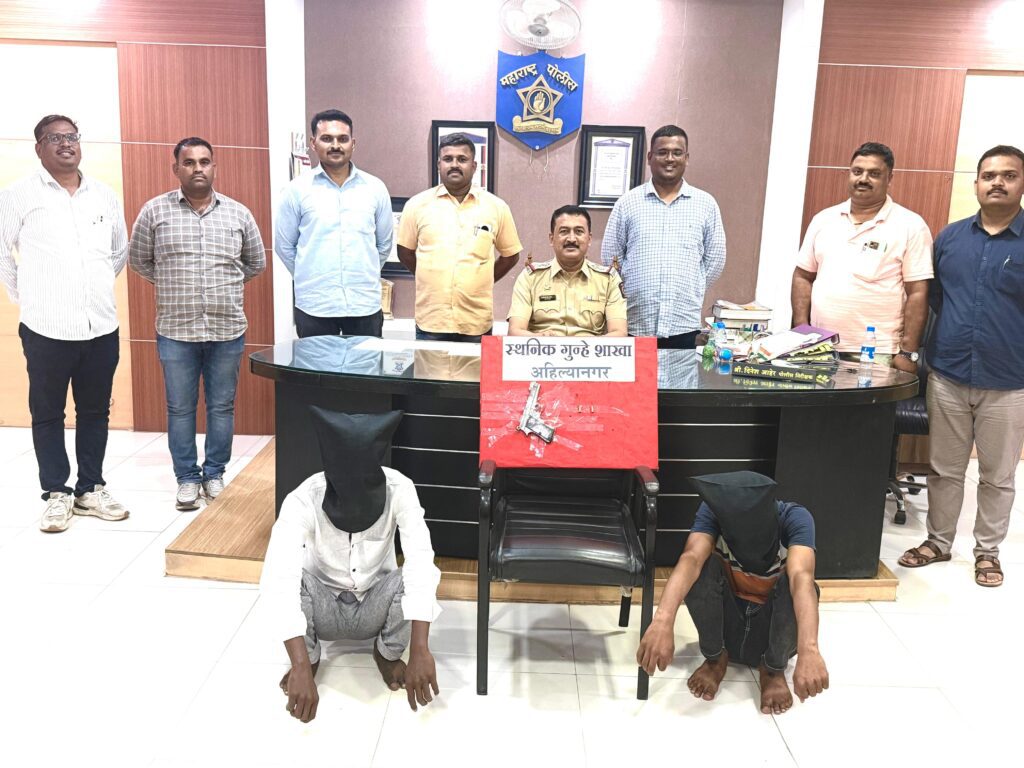 अहिल्यानगर (प्रतिनिधी):- खुनाच्या प्रयत्नाच्या गुन्हयात 2 फरार आरोपीस गावठी कट्टयासह जेरबंद करण्यात स्थानिक गुन्हे शाखेच्या पथकास मोठे यश आले आहे.वरिष्ठ पोलीस अधिकाऱ्यांच्या आदेशानुसार स्थानिक गुन्हे शाखेचे पथक दि.21 मे 2025 रोजी पाथर्डी शहरामध्ये अवैध अग्निशस्त्र बाळगणारे इसमांची माहिती घेत असताना पथकास इसम नामे मुदस्सर सादीक सय्यद व सोमनाथ रमेश काळोखे रा.पाथर्डी असे अग्निशस्त्र बाळगुन ते विक्रीसाठी माणिकदौंडी चौक ता.पाथर्डी येथे थांबले असलेबाबत गोपनीय माहिती मिळाली.मिळालेल्या माहितीवरून पथकाने पंचासमक्ष माणिकदौंडी चौक,पाथर्डी येथे जाऊन संशयीत इसमांचा शोध घेऊन मुदस्सर सादीक सय्यद, वय 22,रा.सिव्हील हॉस्पीटलजवळ,ता.पाथर्डी, सोमनाथ रमेश काळोखे वय 24, रा.आनंदनगर,ता.पाथर्डी जि.अहिल्यानगर यांना ताब्यात घेतले.