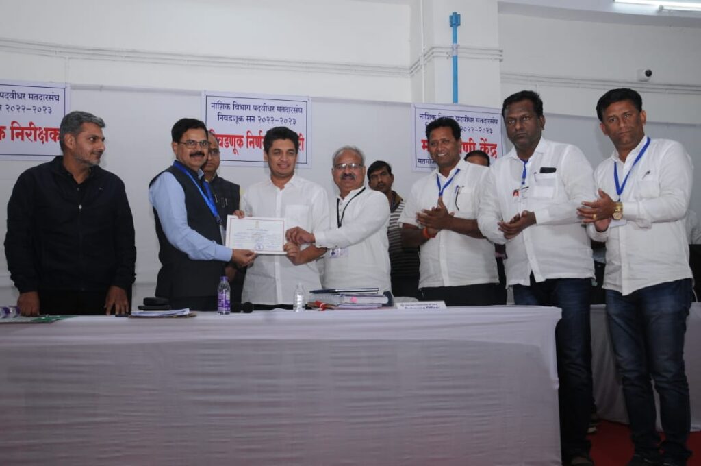 प्रतिनिधी (दि.3 फेब्रुवारी):-नाशिक विभाग पदवीधर मतदारसंघासाठी पहिल्या पसंतीची सर्वाधिक ६८ हजार ९९९ मत मिळवून अपक्ष उमेदवार सत्यजित तांबे विजयी झाले आहेत. निवडणूक निर्णय अधिकारी तथा विभागीय आयुक्त राधाकृष्ण गमे यांनी श्री. तांबे यांना प्रमाणपत्र देवून विजयी उमेदवार म्हणून घोषित केले.विभागीय आयुक्त श्री गमे यांनी पहिल्या पसंतीच्या १ लाख २९ हजार ६१५ मतपत्रिकांची मोजणी पूर्ण झाल्याची घोषणा करत उमेदवारांना प्राप्त मतांची माहिती दिली. विजयी उमेदवारासाठी ५८ हजार ३१० मतांचा कोटा ठरविण्यात आला होता. सत्यजित तांबे यांनी निश्चित कोट्यापेक्षा १० हजार ६८९ मते अधिक प्राप्त केली.त्यांना ६८ हजार ९९९ मत प्राप्त झाली आहेत.एकूण मतमोजणी नतंर १ लाख १६ हजार ६१८ मत वैध ठरली तर १२ हजार ९९७ मत अवैध ठरल्याचे त्यांनी सांगितले.मतमोजणी पूर्ण होऊन अहवाल भारत निवडणूक आयोगाकडे पाठविण्यात आला.आयोगाच्या परवानगीने श्री गमे यांनी सत्यजित तांबे यांना विजयी उमेदवार म्हणून घोषित केले व त्यांना विजयी उमेदवाराचे प्रमाणपत्र प्रदान केले.यावेळी निवडणूक निरीक्षक डॉ. निपुण विनायक, जिल्हाधिकारी नाशिक तथा सहायक निवडणूक निर्णय अधिकारी गंगाथरण् डी., जिल्हाधिकारी अहमदनगर तथा सहायक निवडणूक निर्णय अधिकारी डॉ.राजेंद्र भोसले, जिल्हाधिकारी धुळे तथा सहायक निवडणूक निर्णय अधिकारी जलज शर्मा, जिल्हाधिकारी जळगाव तथा सहायक निवडणूक निर्णय अधिकारी अमन मित्तल, जिल्हाधिकारी नंदूरबार तथा सहायक निवडणूक निर्णय अधिकारी मनीषा खत्री, सहायक निवडणूक निर्णय अधिकारी तथा उपायुक्त (प्रशासन) रमेश काळे, उपायुक्त उन्मेष महाजन यांच्यासह वरिष्ठ अधिकारी, मतमोजणी पर्यवेक्षक, सहपर्यवेक्षक उपस्थित होते.वैध ठरलेल्या मतांपैकी एकूण १५ उमेदवारांना प्राप्त पहिल्या पसंतीचे मते पुढील प्रमाणे.