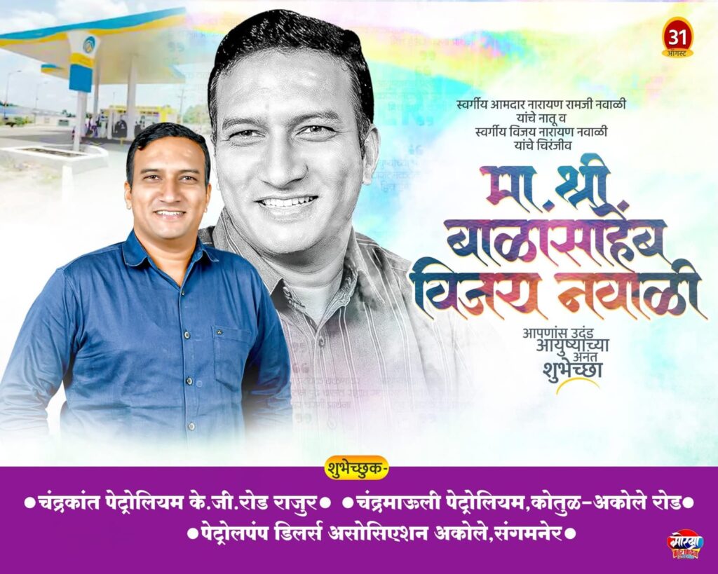 तसेच चंद्रकांत पेट्रोलियम के.जी.रोड राजूर, चंद्रमाऊली पेट्रोलियम कोतुळ अकोले रोड,पेट्रोल पंप डीलर्स असोसिएशन अकोले संगमनेर, क्रिकेट लव्हर्स राजूर,नवाळी,सुपे,देशमुख, गभाले,मोहंडूले परिवाराकडून बाळासाहेब नवाळी यांना शुभेच्छा देण्यात आल्या.