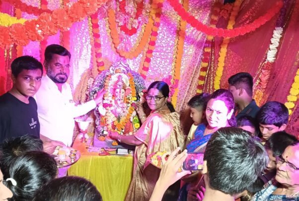 मंडळाच्या वतीने सौ. कांबळे यांचा शालू व पुष्पहार घालून यथोचित सत्कार सन्मान करण्यात आला.यावेळी सौ. कांबळे यांनी गणरायाला साकडे घालीत येणाऱ्या काळात सर्वांना सुखी,समृद्धी,ठेव असे म्हणत बालकांना प्रसाद म्हणून फळं वाटप केले.यावेळी गणेश मंडळाचे अध्यक्ष राजवीर अतुल पाटील,उपाध्यक्ष कृष्णा जाधव,संकल्प दांडीमे,श्रीयन नांद्रे,आरोह सावंत,धर्मा गायकवाड,सर्व बाल गोपाळ,महीला भगिनी तसेच अश्विनी नांदरगे,दिपाली पाटील,वेदिका दांडीमे,विनयख नळेगावकर,प्रज्ञाताई चनागिरे,उज्वला बरूरे तसेच परिसरातील माता भगिनी मोठ्या संख्येने उपस्थित होत्या.