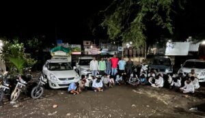 अहिल्यानगर (प्रतिनिधी):- जिल्ह्यात स्थानिक गुन्हे शाखेच्या पथका कडून जामखेड तालुक्यातील खर्डा,शेवगांव व अहिल्यानगर शहरामध्ये तिरट, बिंगो जुगार तसेच अवैध दारु विक्रेत्यावर छापे टाकत 43 आरोपींकडुन तब्बल 38 लाख 20,825/- रुपये किमतीचा मुद्देमाल जप्त करण्याची कारवाई केली आहे.वरिष्ठ पोलीस अधिकाऱ्यांच्या आदेशानुसार स्थानिक गुन्हे शाखेचे पोलीस निरीक्षक श्री. किरणकुमार कबाडी यांनी स्थानिक गुन्हे शाखेतील पथक तयार करुन सदर पथकास अहिल्यानगर शहरामध्ये व शेवगांव पोलीस ठाणे हद्दीमध्ये अवैध धंद्याची माहिती काढुन कारवाई करणेकामी रवाना केले होते.