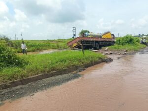 नळदुर्ग प्रतिनिधी (अजित चव्हाण):-जळकोट ते अणदूर दरम्यान (सोलापूर ते हैद्राबाद) राष्ट्रीय महामार्गावर प्रचंड मोठे खड्डे पडले असून महामार्गावर पाणीच पाणी साचले आहे.हायवेच्या अधिकाऱ्यांचा गलथान कारभार, जाणीवपूर्वक दुर्लक्ष आणि निकृष्ठ काम ! यामुळेच अणदूर च्या चिवरी पाटी येथील नागरीकांच्या जवळपास पंधरा ते वीस घरात पावसाचे पाणी घुसले आहे. जळकोट जवळील अलियाबाद शिवारातील मुर्टा पाटी जवळील हायवेवर, गुडघ्या इतके पाणी थांबले असून हायवेला नाल्याचे स्वरूप आले आहे. या सर्व परिस्थितीस जबाबदार असणाऱ्या राष्ट्रीय महामार्ग प्राधिकरणच्या अधिकाऱ्यांना, ही सर्व कामे तात्काळ करून महामार्ग पूर्ववत सुरू करावा, पाण्याचा निचरा करण्यासाठी उपाय योजना कराव्यात, तातडीने महामार्गावरील सर्व मोठेमोठे खड्डेही बुजवावेत अन्यतः महामार्ग प्राधिरणच्या एकाही अधिकाऱ्याला रस्त्यावर फिरू देणार नाही. असा सज्जड इशारा शिवसेना (उबाठा) पक्षाचे तथा जळकोटचे उपसरपंच प्रशांत नवगिरे यांनी हायवेच्या उपस्थित अधिकाऱ्यांना दिला. तसेच महामार्ग पूर्ण सुरळीत होऊन सुस्थितीत होणार तोपर्यंत, टोल वसुली बंद ठेवा. अन्यतः संपूर्ण टोलनाकाच उध्वस्त करू ! असा इशाराही दिला.