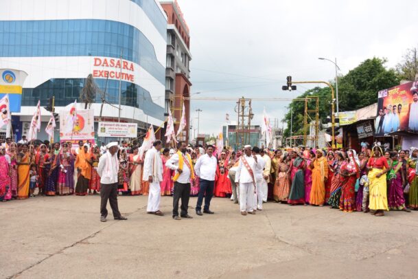 धाराशिव जिल्ह्यातील सकल बंजारा समाज तुळजापुरात हजारोच्या संख्येने आक्रमक होऊन भव्यशक्ती प्रदर्शन करीत एकवटले होते. एकच गोर लाखेरो जोर, जय सेवालाल महाराज असा नारा देत बंजारा समाज रस्त्यावर उतरले होते. पालकमंत्री प्रतापराव सरनाईक यांना निवेदन देण्यासाठी तुळजापूर येथील छत्रपती शिवाजी महाराज पुतळ्याजवळ रोडवर सकल बंजारा समाज ठिय्या मांडून बसले होते. सरकारने आमच्या मागण्याचे विचार न केल्यास आगामी काळात जिल्ह्यात रस्त्यावर उतरून भव्य मोर्चा काढण्यात येणार असा इशारा सकल बंजारा बांधवांनी दिला आहे. मायबाप सरकार आमच्या भावना लक्षात घेऊन समिती गठीत करून बंजारा समाजास एसटी प्रवर्गात समाविष्ट करून आरक्षणाचा लाभ द्यावा अशी मागणी केली आहे. पालकमंत्री सरनाईक यांनी बंजारा समाजाची भेट घेतली. बंजारा समाजाच्या समस्या जाणून घेतली. यावेळी धाराशिव जिल्हा सकल बंजारा बांधवांच्या वतीने बंजारा महिलांनी पालकमंत्री सरनाईक यांना निवेदन दिले.