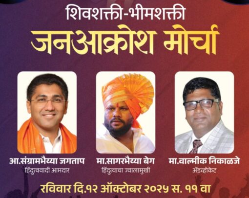 अहिल्यानगर (प्रतिनिधी):- संपूर्ण हिंदू समाजाच्या वतीने येत्या रविवारी, दि.१२ ऑक्टोबर रोजी अहिल्यानगर शहरात शिवशक्ती-भीमशक्ती एकतेचे प्रतीक ठरणारा भव्य जनआक्रोश मोर्चा काढण्यात येणार आहे.