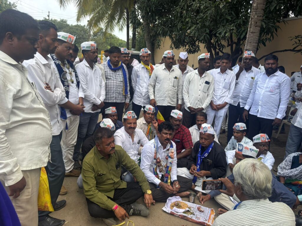 अहिल्यानगर (प्रतिनिधी):-ओल्या दुष्काळामुळे हवालदिल झालेल्या शेतकऱ्यांना कर्जमाफी द्यावी, ओला दुष्काळ जाहीर करावा, तसेच शासकीय जमिनीवरील गरीबांची अतिक्रमणे नियमित करावीत,या मागण्यांसाठी वंचित बहुजन आघाडीच्या कार्यकर्त्यांनी आज पाथर्डी शेवगाव मतदार संघाच्या आमदार मोनिका राजळे यांच्या कासार पिंपळगाव येथील निवासस्थानासमोर चटणी-भाकरी खाऊन काळी दिवाळी साजरी केली.वंचित बहुजन आघाडीचे प्रदेश उपाध्यक्ष प्रा.किसनराव चव्हाण यांच्या नेतृत्वाखाली झालेल्या या आंदोलनात कार्यकर्त्यांनी “शेतकरी विरोधी फडणवीस सरकारचा निषेध असो!” अशा घोषणा दिल्या. यावेळी माजी जिल्हापरिषद सदस्य राहुल दादा राजळे आणि नायब तहसीलदार किशोर सानप यांनी आंदोलनकर्त्यांशी संवाद साधला.मात्र वंचित नेत्यांनी “आम्ही प्रशासनाला आधीच निवेदन दिले आहे,आता आम्ही थेट निषेधच करणार!” अशी भूमिका घेतली.