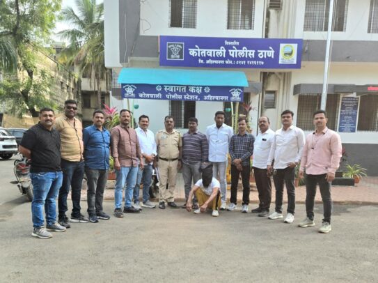 अहिल्यानगर (प्रतिनिधी):-अहिल्यानगर शहरात गोमांस विक्री व जनावरांची बेकायदेशीर कत्तल रोखण्यासाठी कोतवाली पोलिसांनी मोठी कारवाई केली आहे.दि.२७ ऑक्टोबर २०२५ रोजी सायंकाळी साडेपाच वाजण्याच्या सुमारास कोतवाली पोलिसांना गुप्त माहिती मिळाली की,बाबा बंगाली हमालवाडा चौक परिसरात पत्र्याच्या शेडमध्ये गोवंशीय जनावरांच्या मासाची विक्री केली जात आहे तसेच जनावरे कत्तलीसाठी ठेवण्यात आलेली आहेत.त्यानुसार कोतवाली गुन्हे शोध पथकाचे पोलीस उपनिरीक्षक गणेश देशमुख यांनी गुन्हे शोध पथकासह या ठिकाणी छापा टाकला.छाप्यात रऊफ गणी कुरेशी (वय ६०,रा.बाबा बंगाली हमालवाडी,अहिल्यानगर) हा व्यक्ती गोमांस विक्री करताना आढळून आला.तपासादरम्यान त्या ठिकाणी विविध आकाराचे मांसाचे तुकडे लटकवलेले आढळले.झडतीदरम्यान पोलिसांनी एकूण ९१,७००/रू. किमतीचा मुद्देमाल जप्त केला, त्यामध्ये अंदाजे १७० किलो गोमांस किंमत ५१,०००/रु. व एक जिवंत जर्सी जातिची गाय किंमत ₹४०,०००/- कत्तलीसाठी वापरण्यात येणारा सत्तूर ₹२००/- वजन काटा ₹५००/- यांचा समावेश आहे.