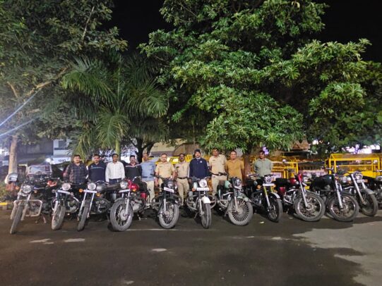 अहिल्यानगर (प्रतिनिधी):- शहरात मोठा आवाज करणाऱ्या बुलेट मोटारसायकलींवर अखेर कोतवाली पोलिसांनी धडक कारवाई करत १४ बुलेट रायडर्सना ताब्यात घेतले.ही कारवाई दि.१३ नोव्हेंबर रोजी पोलिस निरीक्षकांच्या पथकाने केली आहे.अवैधपणे ‘सालेंसर’ काढून कर्णकर्कश आवाज करीत फिरणाऱ्या रायडर्सना कोतवाली पोलिसांनी दंडात्मक कारवाई केली व कायनेटिक चौक येथे नाकाबंदी करून परिसरात थांबवून वाहनांची तपासणी केली.