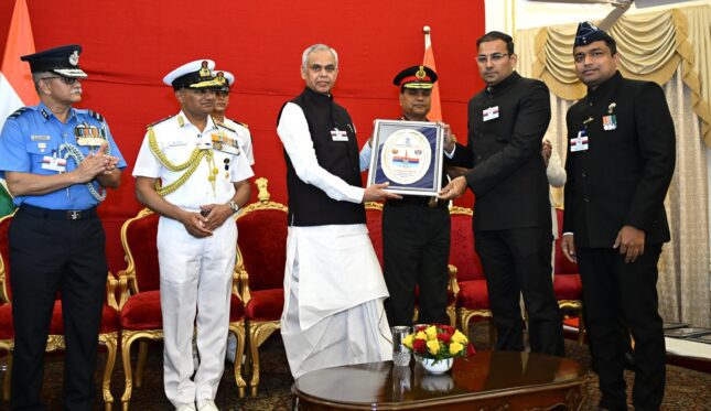 अहिल्यानगर (प्रतिनिधी):-सशस्त्र सेना ध्वजदिन निधी संकलनात अहिल्यानगर जिल्ह्याने पुन्हा एकदा आपली श्रेष्ठ परंपरा कायम ठेवत राज्यात प्रथम क्रमांक पटकावला आहे.यंदा तब्बल 4 कोटी 75 लाख इतका विक्रमी निधी संकलित करून जिल्ह्याने सलग दुसऱ्या वर्षी अव्वल स्थान मिळवले.मुंबईतील राजभवन येथे आयोजित राज्यस्तरीय शुभारंभ व गौरव सोहळ्यात राज्यपाल आचार्य देवव्रत यांच्या हस्ते जिल्हाधिकारी डॉ.पंकज आशिया यांचा विशेष सत्कार करण्यात आला.यावेळी जिल्हा सैनिक कल्याण अधिकारी स्क्वाड्रन लीडर विद्यासागर कोरडे (नि.) उपस्थित होते.अहिल्यानगरची ही कामगिरी विविध शासकीय विभाग, शैक्षणिक संस्था व नागरिकांच्या सक्रिय सहभागामुळे घडली आहे.जिल्हाधिकारी व जिल्हा सैनिक कल्याण कार्यालयाच्या मार्गदर्शनाखाली खालील आस्थापनांनी उल्लेखनीय योगदान दिले :