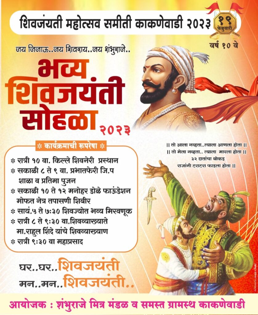 पारनेर प्रतिनिधी (दि.१७ फेब्रुवारी):-तालुक्यातील सामाजिक,धार्मिक, शैक्षणिक क्षेत्रात अग्रेसर असणाऱ्या काकनेवाडी येथे सालाबाद प्रमाणे यंदाही 10 व्या वर्षी शम्भूराजे मित्र मंडळ,निलेश लंके प्रतिष्ठान व ग्रामस्थांच्या सहकार्यातून शिवजयंतीचे आयोजन करण्यात आले आहे.दि.18/02/2022रोजी रात्री गावातील युवक शिवजन्म स्थळ किल्ले शिवनेरी येथे शिवज्योत आणण्यासाठी रॅलीचे आयोजन करण्यात आले आहे.जयंतीदिनी शालेय विद्यार्थ्यांची प्रभात फेरी, महाराजांच्या प्रतिमेचे पूजन, गुणवन्त विद्यार्थांचा,तसेच मुख्याध्यापक आणि मार्गदर्शक शिक्षक,तबला वादनामध्ये ज्यांच्या विद्यार्थ्यांची दुबई येथील स्पर्धेत निवड झाली होती असे या गावचे भूमीपुत्र रामदास ठुबे आणि त्यांच्या यशस्वी विद्यार्थ्यांच्या सत्काराचे आयोजन शंभुराजे मित्र मंडळ व निलेश लंके प्रतिष्ठान यांच्या वतीने करण्यात येणार आहे.तसेच वैद्यकीय आणी पशुवैद्यकीय क्षेत्रात योगदान देणाऱ्या मान्यवरांचाही सन्मान यावेळी काकनेवाडी ग्रामस्थ आणी मंडळाच्या वतीने करण्यात येणार आहे.नंतर मनोहर डोळे नेत्रालय यांच्या सहकार्याने मोफत नेत्र तपासणी शिबिराचे आयोजन करण्यात आले आहे तरी सर्वानी या शिबिराचा लाभ घेण्याचे आव्हान मंडळाचे अध्यक्ष गवरामशेठ वाळुंज यांनी केले आहे.शिवजयंती निम्मित राणीताई निलेश लंके (जि.प सदस्य ),विजुभाऊ औटी(नगराध्यक्ष,पारनेर),उमाजी भागुजी वाळुंज (उपसभापती प.स.पारनेर),डॉ.देठे.(वैद्यकीय अधिकारी प्रा.आ.केंद्र अळकुटी),शिवाजी ना.वाळुंज (मा.शिक्षण वि.अधिकारी),सूर्यकांत बबन पवार (पश्चिम मुंबई अध्यक्ष भाजपा),हभप दादाभाऊ महाराज वाळुंज, सखाराम सर (मुंबई),शिवाजी ना.वाळुंज (मा.शिक्षण वि.अधिकारी)डॉ.सोबले यांची प्रमुख उपस्थिती राहील अशी माहिती शिवजन्मोत्सव समिती अध्यक्ष राहुल वाळुंज यांनी दिली.छत्रपती शिवाजी महाराज जयंती निमित्ताने पवार वस्ती येथे शंभूराजे राजे मित्र मंडळ व निलेश लंके प्रतिष्ठान यांच्या वतीने भव्य टेनिस बॉल क्रिकेट स्पर्धा चे आयोजन करण्यात आले आहे.संध्याकाळी भव्य मिरवणूक, प्रसिद्ध शिवव्याख्याते राहुल शिंदे (गुरुजी) यांच्या व्याख्यानाचे आयोजन करण्यात आले आहे.व्याख्यान संपल्या नंतर महाप्रसाद असल्याची माहिती मंडळाचे मार्गदर्शक हभप. रंगनाथ महाराज वाळुंज यांनी दिली.