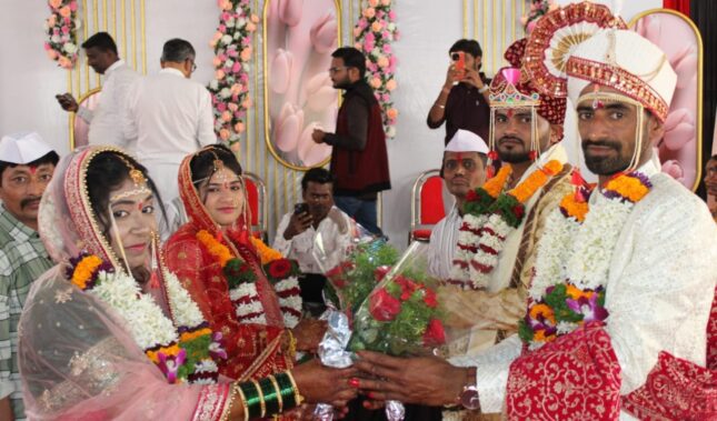 यावेळी स्नेहालयाच्या अध्यक्ष जयाताई जोगदंड,विश्वस्त डॉ. अंशू मुळे,सपना असावा,शिल्पा कामत,संचालक हनिफ शेख, प्रविण मुत्याल,स्नेहाधार प्रकल्पाचे मानद संचालक अॅड. श्याम असावा,तसेच पुणे स्नेहाधारच्या विनोदिनी सातभाई, प्रीती गोडबोले,लता मोहळ, विवेक नारळकर आदी मान्यवर आप्त म्हणून उपस्थित होते.समाजाने वाळीत टाकलेल्या एच.आय.व्ही.संसर्गित व्यक्तींना नवजीवनाची संधी देण्यासाठी स्नेहालय संस्थेच्या वतीने “नवी उमेद – नवे जीवन – नवी आशा” या संकल्पनेतून २ डिसेंबर २०२५ रोजी राज्यस्तरीय वधू-वर परिचय मेळाव्याचे आयोजन करण्यात आले होते.या मेळाव्यास तब्बल ३०० हून अधिक वधू-वरांनी नोंदणी केली होती.त्यामधून निवडलेल्या दोन जोडप्यांचा विवाह या सामुदायिक विवाह सोहळ्यात मोठ्या उत्साहात व सन्मानाने पार पडला.