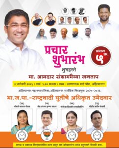“निधार विकासाचा, संकल्प विजयाचा!” या घोषवाक्याखाली होणाऱ्या या प्रचार शुभारंभ कार्यक्रमास आमदार संग्रामभैय्या जगताप हे प्रमुख पाहुणे म्हणून उपस्थित राहणार असून त्यांच्या शुभहस्ते प्रचाराचा औपचारिक प्रारंभ होणार आहे.