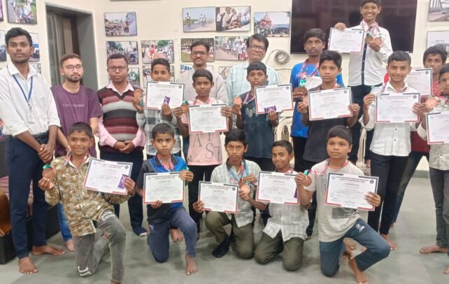 рдпрд╛ рдпрд╢рд╕реНрд╡реА рдЦреЗрд│рд╛рдбреВрдВрдЪрд╛ рдЧреМрд░рд╡ рд╡ рд╕рддреНрдХрд╛рд░ рдХрд░рдгреНрдпрд╛рд╕рд╛рдареА рд╕рджрд░ рдХрд╛рд░реНрдпрдХреНрд░рдорд╛рдЪреЗ рдЖрдпреЛрдЬрди рдХрд░рдгреНрдпрд╛рдд рдЖрд▓реЗ рд╣реЛрддреЗ. рдХрд╛рд░реНрдпрдХреНрд░рдорд╛рдЪреНрдпрд╛ рдЕрдзреНрдпрдХреНрд╖рд╕реНрдерд╛рдиреА рд╕реНрдиреЗрд╣рд╕реНрдкрд░реНрд╢ рдкреНрд░рдХрд▓реНрдкрд╛рдЪреЗ рдорд╛рдирдж рд╕рдВрдЪрд╛рд▓рдХ рдЖрджрд░рдгреАрдп рд╕рдВрдЬрдп рдмрдВрджрд┐рд╖реНрдЯреА рдЙрдкрд╕реНрдерд┐рдд рд╣реЛрддреЗ. рддреНрдпрд╛рдВрдиреА рдореБрд▓рд╛рдВрдЪреЗ рдордирд╛рдкрд╛рд╕реВрди рдХреМрддреБрдХ рдХрд░рдд рдЦреЗрд│рд╛рд╕реЛрдмрддрдЪ рд╢рд┐рдХреНрд╖рдгрд╛рддрд╣реА рд╕рд╛рддрддреНрдп рдареЗрд╡рд╛, рдЕрд╕реЗ рдкреНрд░реЗрд░рдгрд╛рджрд╛рдпреА рдорд╛рд░реНрдЧрджрд░реНрд╢рди рдХреЗрд▓реЗ. рддрд╕реЗрдЪ рднрд╡рд┐рд╖реНрдпрд╛рддреАрд▓ рд╕реНрдкрд░реНрдзрд╛рдВрд╕рд╛рдареА рдХрд░рд╛рдЯреЗ рдХреНрд▓рд╛рд╕рд╕рд╛рдареА рдЖрд╡рд╢реНрдпрдХ рд╕рд╛рд╣рд┐рддреНрдп рд▓рд╡рдХрд░рдЪ рдЙрдкрд▓рдмреНрдз рдХрд░реВрди рджрд┐рд▓реЗ рдЬрд╛рдИрд▓, рдЕрд╕реЗ рдЖрд╢реНрд╡рд╛рд╕рдирд╣реА рддреНрдпрд╛рдВрдиреА рджрд┐рд▓реЗ.рдпрд╛рд╡реЗрд│реА рдХрд░рд╛рдЯреЗ рдХреНрд▓рд╛рд╕рдЪреЗ рдкреНрд░рд╢рд┐рдХреНрд╖рдХ рдорд╛рдирдиреАрдп рд╡реИрднрд╡ рджреЗрд╢рдореБрдЦ рдпрд╛рдВрдиреАрд╣реА рд╕рд░реНрд╡ рдореБрд▓рд╛рдВрдЪреЗ рдЕрднрд┐рдирдВрджрди рдХрд░рдд рд░рд╛рдЬреНрдп рд╡ рд░рд╛рд╖реНрдЯреНрд░реАрдп рд╕реНрддрд░рд╛рд╡рд░ рдпрд╢ рдорд┐рд│рд╡рд╛рд╡реЗ, рдЕрд╢реА рдЕрдкреЗрдХреНрд╖рд╛ рд╡реНрдпрдХреНрдд рдХреЗрд▓реА.