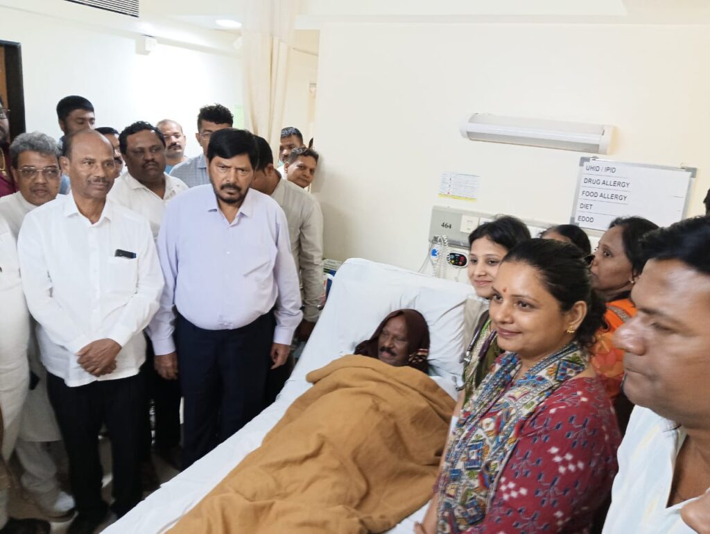 पॅंथर श्रीकांत भालेराव यांची ना.आठवले यांनी घेतली भेट…रुग्णालयातून डिस्चार्ज दिला कार्यकर्त्यांनी काळजी करु नये