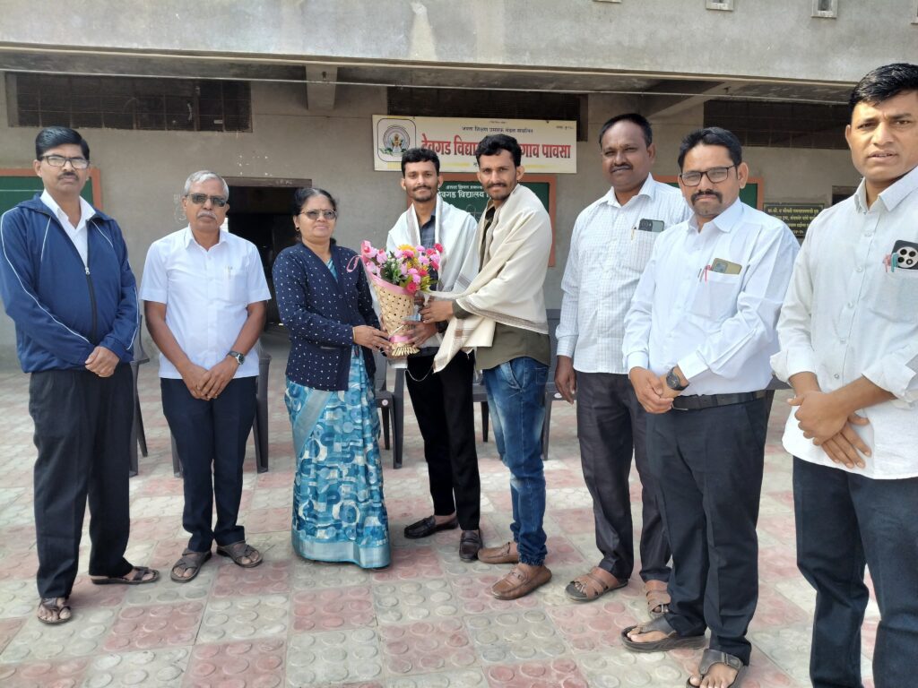 देवगड विद्यालयाच्या मुख्यध्यापिका श्रीमती.उगले सुनंदा यांनी शाल,श्रीफळ आणि पुष्पगुच्छ देऊन सत्कार सन्मान केला. याप्रसंगी त्यांचे चुलते संदीप पावसे विद्यालयातील सहशिक्षक नेहे व्ही.आर,माने एम.ए, तातळे एस. एम.,राहाणे आर.बी. ,वाघ एस.डी ,थोरात डी.डी ,कुदळ ए.एस ,कातोरे सर,श्रीमती.वर्पे एस.डी ,शिरतार एस.एस ,पवार एस.बी ,भालेराव आर.ए. यांच्या सह विद्यार्थी मोठ्या प्रमाणात उपस्थित होते.