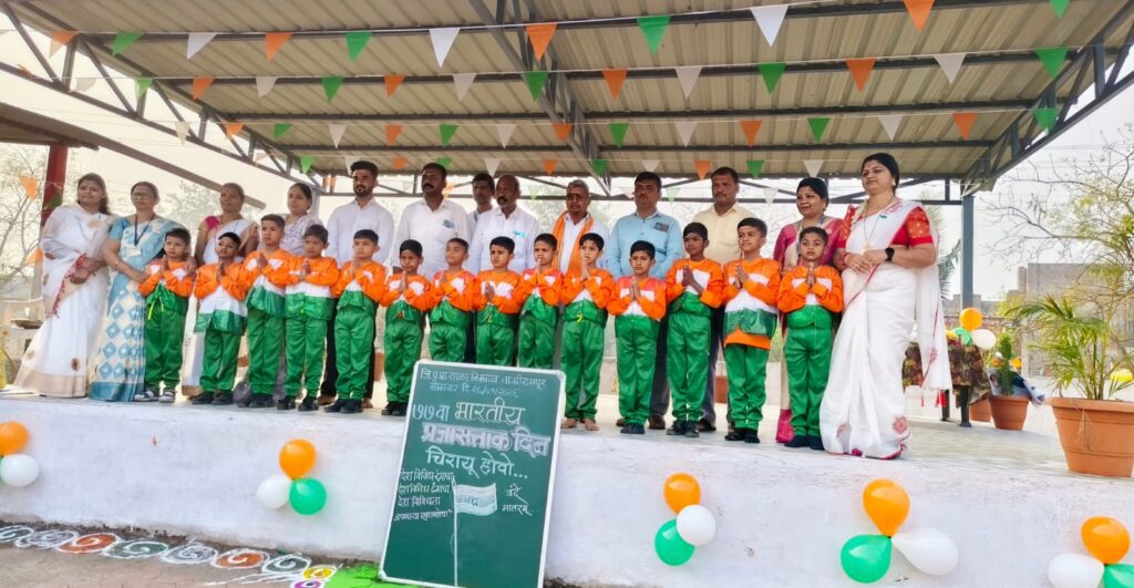 निमगाव खैरी जिल्हापरिषद शाळेत देशभक्तीचा जल्लोष ७७ वा प्रजासत्ताक दिन उत्साहात साजरा