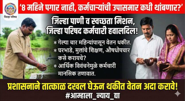 ZP NEWS…दोन दशकांची सेवा तरीही उपासमारीची वेळ..!चार महिने मानधन थकित जिप.पाणी-स्वच्छता कर्मचाऱ्यांचा ४ फेब्रुवारी पासून काम बंदचा इशारा