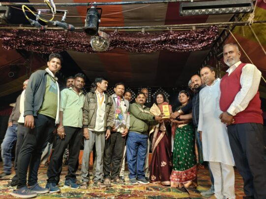 Ahilyanagar..संगमनेर (प्रतिनिधी/नितीनचंद्र भालेराव):-संगमनेर तालुक्यातील हिवरगाव पावसा येथे श्री.क्षेत्र खंडोबा देवस्थान ट्रस्टच्या वतीने आयोजित देवगड यात्रा उत्सव मोठ्या उत्साहात साजरा करण्यात आला. राष्ट्रसंत गाडगे महाराजांच्या पदस्पर्शाने पावन झालेली ही भूमी तसेच आद्यनृत्यांगणा नामचंद पवळा भालेराव हिवरगावकर यांच्या समृद्ध कलावारशाची परंपरा जपणाऱ्या हिवरगाव पावसा कला नगरीत, लोकनाट्य तमाशाचा मोफत कार्यक्रम आयोजित करण्यात आला होता.या यात्रा उत्सवानिमित्त, तमाशा क्षेत्रात प्रथम पदार्पण करणाऱ्या आद्यनृत्यांगणा नामचंद पवळा भालेराव हिवरगावकर यांच्या स्मरणार्थ दरवर्षी लोककलावंतांना गौरविण्यात येते. कला सम्राज्ञी पवळा कला मंच तसेच महात्मा फुले, डॉ. बाबासाहेब आंबेडकर व राजर्षी शाहू विचार मंच यांच्या संयुक्त विद्यमाने दिला जाणारा हा प्रतिष्ठेचा पुरस्कार यंदा प्रसिद्ध लोककलावंत व लावणी सम्राज्ञी, राष्ट्रपती पदक विजेत्या विठाबाई नारायणगावकर यांच्या कन्या मालती इनामदार यांना प्रदान करण्यात आला.