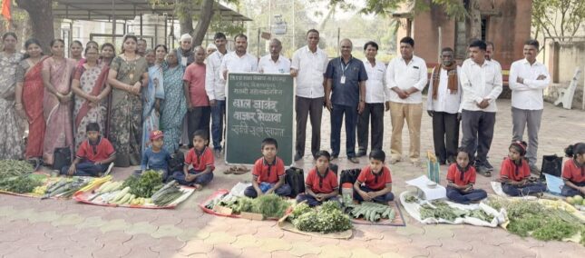 शिकता-शिकता व्यापाराचे धडे..! निमगाव शाळेच्या बाल आनंद बाजारात २५ हजारांची कमाई..