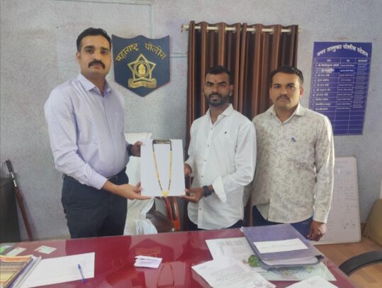 अहमदनगर प्रतिनिधी (दि.22 फेब्रुवारी):-भोयरे पठार येथुन घरफोडी करून चोरीस गेलेले सुमारे दिड लाख रुपये किमतीचे 30 ग्रॅम वजनाचे सोन्याचे गंठण फिर्यादीस केले परत नगर तालुका पोलिसांची कामगिरी,याबाबत सविस्तर माहिती अशी की दि.16 फेब्रुवारी 2021 रोजी अविनाश बाबासाहेब साठे (रा.भोयरे पठार ता.नगर) हे त्यांच्या कुटुंबीयांसह समारंभास गेले असताना घरास कुलूप लावून गेले होते,चोरट्यांनी त्यांच्या घराचे कुलूप तोडून 30 ग्रॅम वजनाचे सोन्याचे गंठण चोरून नेले होते,सदरबाबत नगर तालुका पोलिस ठाणे गुरन 75/2021भादवीक 454,380 प्रमाणे गुन्हा दाखल होता.सदर गुन्ह्यातील आरोपींना अटक करून त्यांचे कडून मुद्देमाल हस्तगत करण्यात आलेला होता.सदरचे दिड लाख रुपये किमतीचे 30 ग्रॅम वजनाचे सोन्याचे गंठण दि. 22/02/23 रोजी सर्व न्यायालयीन प्रक्रिया पूर्ण करून फिर्यादी अविनाश बाबासाहेब साठे यांच्याकडे सुपुर्त करण्यात आले,अविनाश साठे यांनी नगर तालुका पोलिसांचे आभार व्यक्त केले आहेत.सदरची कारवाई पोलीस अधीक्षक राकेश ओला, अप्पर पोलीस अधीक्षक प्रशांत खैरे,उपविभागीय पोलिस अधिकारी अजित पाटील यांचे मार्गदर्शनाखाली नगर तालुका सपोनि/राजेंद्र सानप,पोकॉ/संभाजी बोराडे, पोकॉ/जयदत्त बांगर यांनी केलेली आहे.
