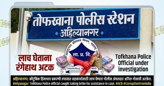 Police caught in the web of bribery..तोफखाना पोलीस ठाण्यातील अंमलदार लाचलुचपतच्या जाळ्यात..३५ हजारांची लाच घेताना रंगेहात अटक