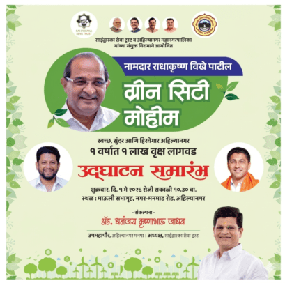 अहिल्यानगर (प्रतिनिधी):-निसर्गाचा ढासळत चाललेला समतोल आणि वाढते तापमान यावर मात करण्यासाठी केवळ चर्चा नको तर प्रत्यक्ष कृतीची गरज आहे. हेच ओळखून अहिल्यानगर महानगरपालिकेचे उपमहापौर ॲड. धनंजय जाधव यांच्या संकल्पनेतून ‘ना. श्री. राधाकृष्ण विखे पाटील ग्रीन सिटी’ मोहिमेचा भव्य शुभारंभ १ मे – महाराष्ट्र दिनी करण्यात येणार आहे.या महत्त्वाकांक्षी मोहिमेअंतर्गत आगामी एका वर्षात शहरात १ लाख वृक्ष लागवड व त्यांचे संवर्धन करण्याचा ऐतिहासिक संकल्प सोडण्यात आला आहे.