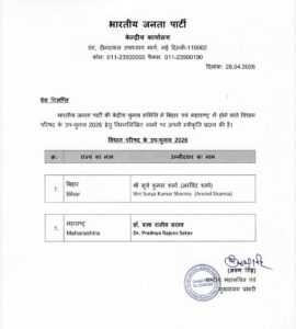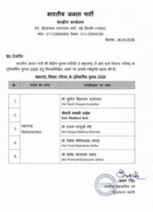 केंद्रीय सरचिटणीस आणि मुख्यालय प्रभारी अरुण सिंह यांच्या स्वाक्षरीने ही अधिकृत यादी आज (२८ एप्रिल २०२६) रोजी प्रसिद्ध करण्यात आली आहे.या उमेदवारी घोषणेनंतर आता महाराष्ट्राच्या राजकीय वातावरणात हालचालींना वेग आला आहे.