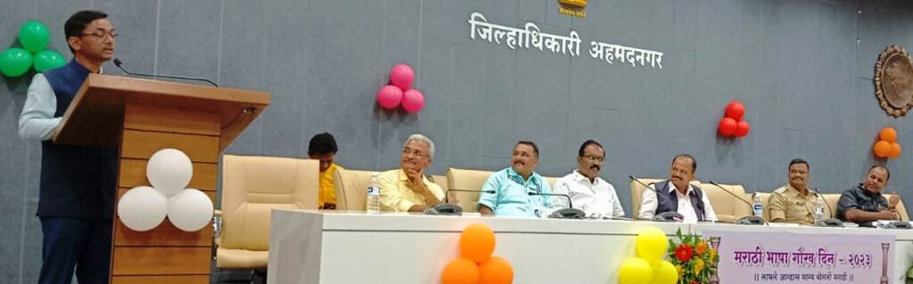 अहमदनगर प्रतिनिधी (दि.२७ फेब्रुवारी):-आपला इतिहास,आपली संस्कृती आणि आपली भाषा याचा गौरव करणे आणि त्याची अस्मिता आणि अभिमान बाळगणे हे आपले आद्य कर्तव्य आहे.मराठी भाषेचा अभिमान बाळगण्याबरोबरच तीचा अधिकाधिक उपयोग व वापर होऊन मराठी भाषेचा अधिक प्रचार व प्रसार करण्याचे आवाहन अपर जिल्हाधिकारी सुहास मापारी यांनी केले.जिल्हाधिकारी कार्यालयातील पंडित जवाहरलाल नेहरु सभागृहात मराठी भाषा गौरव दिनानिमित्त विशेष कार्यक्रमाचे आयोजन करण्यात आले होते. त्याप्रसंगी अपर जिल्हाधिकारी श्री मापारी बोलत होते.व्यासपीठावर अतिरिक्त पोलीस अधीक्षक प्रशांत खैरे,निवासी उपजिल्हाधिकारी राजेंद्रकुमार पाटील,उपजिल्हाधिकारी पल्लवी निर्मळ,उपजिल्हाधिकारी जयश्री आव्हाड,जिल्हा ग्रंथालय अधिकारी अशोक गाडेकर,जिल्हा मराठी भाषा समितीचे सदस्य डॉ.संजय कळमकर,किशोर मरकड, प्रा.शशिकांत शिंदे, ऐतिहासिक वस्तु संग्रहालयाचे अधीक्षक संतोष यादव, राधाबाई काळे महिला महाविद्यालयाचे प्राचार्य डॉ.शंकर थोपटे,आदींची प्रमुख उपस्थिती होती.अपर जिल्हाधिकारी सुहास मापारी म्हणाले की,भाषा हे जरी ज्ञान मिळविण्याचे माध्यम असले तरी त्या पुढेही जाऊन आपल्या भाषेचा विकास आणि संवर्धन करणे ही आपलीच जबाबदारी आहे. मराठी भाषा अधिक सोईस्कर असुन ती प्रत्येकाने अंगिकारली पाहिजे.मराठी भाषेचा अधिक प्रमाणात प्रचार,प्रसार होण्याच्यादृष्टीने प्रत्येकाने प्रयत्न करण्याची गरज व्यक्त करत आजच्या तरुण पिढीचा समाजमाध्यमांकडे अधिक ओढा दिसतो.त्यामुळे वाचनाची सवय लोप पावत चालली असुन तरुणांनी वाचनाची सवच अंगिकारण्याचे आवाहनही त्यांनी यावेळी केले.डॉ.संजय कळमकर म्हणाले,सर्वांना आपल्यामध्ये सामावून घेणारी नदीसारखी अशी आपली मराठी भाषा आहे.मराठीला अभिजात भाषेचा दर्जा मिळण्यासाठी सर्वंकष प्रयत्नांची गरज असुन तरुण पिढीने मराठी भाषेला आपलसं करण्याचे आवाहनही त्यांनी यावेळी केले.जिल्हा ग्रंथालय अधिकारी अशोक गाडेकर म्हणाले की,जिल्ह्यातील वाचकांच्या वाचनाची भूक भागविण्याचे काम जिल्हा ग्रंथालय कार्यालयमार्फत करण्यात येत आहे. कार्यालयात 26 हजार पेक्षाही अधिक पुस्तकांचा साठा उपलब्ध असुन स्पर्धा परीक्षा देणाऱ्या विद्यार्थ्यांना उपयुक्त अशी पुस्तके या ग्रंथालयामध्ये असल्याचेही त्यांनी यावेळी सांगितले.यावेळी ऐतिहासिक वस्तुसंग्रहालयाचे अधीक्षक संतोष यादव यांनीही आपले मनोगत व्यक्त केले. कार्यक्रमाचे प्रास्ताविक प्रा. शशिकांत शिंदे यांनी केले. कार्यक्रमाचे सुत्र संचलन डॉ. अमोल बागुल यांनी केले तर आभार किशोर मरकड यांनी मानले.यावेळी नगर शहरातील विविध वृत्तपत्रातील पत्रकारांचाही यावेळी सन्मान करण्यात 