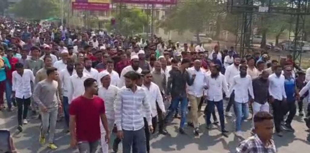 अहमदनगर प्रतिनिधी(दि.६ मार्च):-दि.५ मार्च रोजी नटराज हॉटेल महेश टॉकीज जवळ अमन शेख नामक युवकावर जीवघेणा हल्ला करत त्याला बेदम मारहाण करण्यात आली.अमनला करण्यात आलेल्या मारहाणीच्या आरोपींना तत्काळ अटक करून कठोर कारवाई करण्यात यावी अशी मागणी समस्त मुस्लीम समाजाच्या वतीने करण्यात आली.तसेच या मागणी बरोबरच रामवाडी भागात झालेल्या वादामध्ये उपस्थिती नसतांना देखील जाणीवपूर्वक नावे गोवण्यात आली आहे.त्यामुळे शहरात कायदा व सुव्यवस्था बिघडवीणाऱ्यांवर कठोर कारवाई करण्यात यावी अशी मागणी समस्त मुस्लीम समाजाच्या वतीने करण्यात आली आहे.दरम्यान शहरातील कोठला फलटणचौकी पासुन पोलिस अधीक्षक कार्यालयावर हा मूक मोर्चा काढण्यात आला होता.यावेळी मुस्लीम समाजातील नागरिक मोठ्या संख्येने उपस्थित होते.