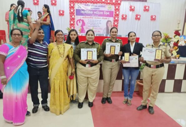 अहमदनगर प्रतिनिधी (दि.८ मार्च):-८ मार्च जागतिक महिला दिनाचे औचित्य साधून जिल्हा पोलीस दलातील नगर तालुका पोलीस ठाण्याच्या मपोना/मोहिनी कर्डक व बेलवंडी पोलीस ठाण्याच्या मपोना/सुरेखा वलवे यांना पोलीस दलामध्ये उत्कृष्टरित्या कामगिरी केल्याबद्दल प्रशंसापत्रक देण्यात आले.जिल्हा पोलीस अधीक्षक राकेश ओला,अप्पर पोलीस अधीक्षक श्रीरामपूर विभाग स्वाती भोर मॅडम,अप्पर पोलीस अधीक्षक प्रशांत खैरे अहमदनगर,श्री.कमलाकर जाधव पोलीस उपअधीक्षक गृह अहमदनगर यांच्या हस्ते हे पत्रक देण्यात आले.