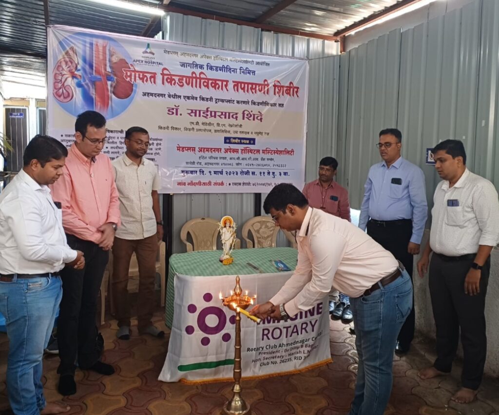 अहमदनगर प्रतिनिधी (दि.१० मार्च):-जागतिक किडनी (मूत्रपिंड) दिनानिमित्ताने मेडप्लस् अहमदनगर अॅपेक्स हाॅस्पिटल मेल्टिस्पेशालिटीच्यावतीने आयाेजित करण्यात आलेल्या माेफत आराेग्य तपासणी शिबिराला उत्स्फूर्त प्रतिसाद मिळाला. या शिबिरात सुमारे १२५ रुग्णांची माेफत तपासणी करण्यात आल्याची माहिती अॅपेक्स हाॅस्पिटलचे संचालक किडनी विकार तज्ज्ञ डाॅ. साईप्रसाद शिंदे यांनी दिली.या शिबिरात सहभागी झालेल्या रुग्णांच्या वैद्यकीय तपासणी सवलतीच्या दरात करण्यात आल्या.तसेच काही रुग्णांना तपासणीत किडनीचं साैम्य आजार आढळून आले. त्यावर मार्गदर्शन करून औषधोपचार देण्यात आल्याचेही डाॅ. शिंदे यांनी सांगितले.डाॅ.साईप्रसाद शिंदे म्हणाले,”किडनी हा शरीरातील अवयव म्हणजे फिल्टर आहे.शरीर शुद्ध ठेवण्याचे कार्य किडनी करत असते.या अवयवाची काळजी घेतल्यास काेणताही आजार हाेणार नाही.या अवयवाकडे दुर्लक्ष केल्यास वेगवेगळे आजार उद्धभवू शकतात. अहमदनगर शहरातील अॅपेक्स हाॅस्पिटलमार्फत राबविण्यात आलेल्या शिबिरात रुग्णांना हेच मार्गदर्शन करण्यात आले”.या शिबिरात सुमारे १२५ रुग्ण सहभागी झाले हाेते.या रुग्णांची माेफत वैद्यकीय तपासणीबराेबर औषधाेपचाराबाबत मार्गदर्शन करण्यात आले.अहमदनगर शहरासह पाथर्डी, शेवगाव, नेवासे, श्रीगाेंदे,राहुरी,श्रीरामपूर,पारनेर या तालुक्यांसह बीड जिल्ह्यातूनही रुग्ण या शिबिरात सहभागी झाले हाेते, अशी माहिती डाॅ. साईप्रसाद शिंदे यांनी दिली.हे शिबिर सुरू असताना राज्याचा अर्थसंकल्प उपमुख्यमंत्री देवेंद्र फडणवीस सादर करत हाेते. त्यांनी आराेग्यविषयक बजेटमध्ये माेठ्या तरतुदी केल्या आहेत. यात महात्मा ज्याेतिराव फुले जनाराेग्य याेजनेची व्याप्ती वाढविण्यात आली आहे. या याेजनेद्वारे किडनी प्रत्यारोपण शस्त्रक्रियांसाठी चार लाखांपर्यंत मदत मिळणार असल्याची घाेषणा करण्यात आल्याचीही माहिती डाॅ. साईप्रसाद शिंदे यांनी दिली.या शिबिराला सुरूवात दीपप्रज्वलनाने झाली.अॅपेक्स हाॅस्पिटलचे मुख्य कार्यकारी अधिकारी डाॅ. संताेष गांगर्डे यांनी प्रास्ताविक केले.डाॅ.धनंजय वारे,डाॅ.ईश्वर कणसे, डाॅ.महेश जरे,डाॅ.प्रशांत काळे,डाॅ.दिलीप बागल, डाॅ. कृणाल काेल्हे,डाॅ.सचिन साेलाट,डाॅ.नय्यर हरीश शिबिराला उपस्थित हाेते.अॅपेक्स हाॅस्पिटलचे हेमंत त्र्यंबके,कल्पना शिंदे,बाळू वाघ,रेणुका राव, निखील सातपुते,जया म्हस्के,महेश कराळे,विकास गांगर्डे,महेश रासकर यांनी शिबिर यशस्वीतेसाठी परिश्रम घेतले.जनसंपर्क अधिकारी रामदास शेवाळे यांनी आभार मानले.