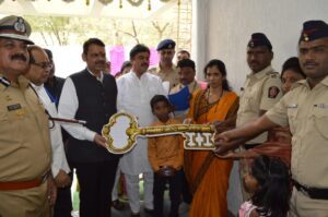 अहमदनगर प्रतिनिधी (दि.११ मार्च):-कर्जत येथील पोलीस अधिकारी कर्मचाऱ्यांच्या नवीन बांधकाम केलेल्या ३८ निवासस्थानांचे लोकार्पण राज्याचे उपमुख्यमंत्री तथा वित्तमंत्री देवेंद्र फडणवीस यांच्या हस्ते आज कर्जत येथे करण्यात आले.जामखेड येथील ३८ निवासस्थानांचे कर्जत येथून ऑनलाईन लोकार्पण करण्यात आले. यावेळी महसूल,पशुसंवर्धन व दूग्ध व्यवसाय विकास मंत्री तथा जिल्ह्याचे पालकमंत्री राधाकृष्ण विखे-पाटील, आमदार राम शिंदे,नाशिक परिक्षेत्र विशेष पोलीस उप महानिरीक्षक डॉ.बी.जी.शेखर पाटील,जिल्हाधिकारी सिध्दाराम सालीमठ,जिल्हा परिषदेचे मुख्य कार्यकारी अधिकारी आशिष येरेकर, जिल्हा पोलीस अधीक्षक राकेश ओला उपस्थित होते.उपमुख्यमंत्री देवेंद्र फडणवीस यांनी यावेळी कर्जत येथील या नवीन पोलीस निवासस्थांनाची पाहणी केली.पोलीस कर्मचारी व बॅंड पथकातील कर्मचाऱ्यांशी संवाद साधला.कर्जत येथे ३०२३.१५ व जामखेड येथे २९९६.३१ चौरस मीटर मध्ये पोलीस अधिकारी-कर्मचाऱ्यांसाठी ७६ निवासस्थाने बांधण्यात आली आहेत.कर्जत येथे ३८ व जामखेड येथे ३८ निवासस्थाने एकूण १५ कोटी २१ लाख रुपये खर्चून बांधण्यात आली आहेत.या इमारतीचे बांधकाम महाराष्ट्र राज्य पोलीस गृहनिर्माण व कल्याण महामंडळ मर्यादित,मुंबई यांनी केले आहे.यावेळी उपमुख्यमंत्री देवेंद्र फडणवीस यांच्या हस्ते प्रातिनिधीक स्वरुपात पोलिस नाईक संभाजी वाबळे व पोलीस शिपाई ईश्वर माने यांना २ बीएचके सदनिकेच्या चाव्या हस्तांतरित करण्यात आल्या.कार्यक्रमाचे संयोजन अपर पोलीस अधीक्षक प्रशांत खैरे, पोलीस गृहनिर्माण महामंडळाच्या अधीक्षक अभियंता अनिता परदेशी,उप अभियंता विजय भंगाळे, प्रकल्प अभियंता सागर सगळे,कर्जतचे उपविभागीय पोलिस अधिकारी अण्णासाहेब जाधव,सहायक पोलिस निरीक्षक सतीश गावित,जयंत कोलते, हर्षद सारडा व रविंद्र पाटील यांनी केले.महाराष्ट्र राज्य वीज वितरण कंपनीच्या देऊळवाडी (ता.कर्जत) येथील ४००/२२० के.व्ही.केंद्राचेही उपमुख्यमंत्री देवेंद्र फडणवीस यांच्याहस्ते यावेळी ऑनलाईन लोकार्पण करण्यात आले.