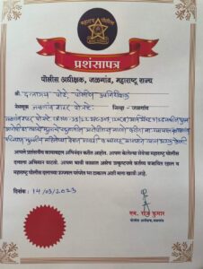जळगाव प्रतिनिधी (दि.१५ मार्च):-अहमदनगर जिल्ह्यातील रहिवासी असलेले व सध्या जळगाव शहर पोलीस स्टेशन येथे नियुक्तीस असलेले पोलीस उपनिरीक्षक दत्तात्रय पोटे यांना जळगाव शहर पोलीस स्टेशन crno-39/22,12(ब) आर्म ॲक्ट 3/25 मधील आरोपी हा त्याच्या मुलाचे खुनातील आरोपीस मारण्याकरिता मा.न्यायालय जळगाव परिसरात मुस्लिम महिलेचा देशात गावठी कट्ट्यासह आला असता त्यास पोलीस उपनिरीक्षक दत्तात्रय पोटे यांनी सिताफिने अटक केली.म्हणून जळगाव पोलीस दलाकडून पोलीस उपनिरीक्षक दत्तात्रय पोटे यांना प्रशंसापत्रक देऊन गौरविण्यात आले.यावेळी जळगाव जिल्हा पोलीस अधीक्षक ए.राजकुमार,अपर पोलीस अधीक्षक गवळी यांच्या हस्ते हे प्रशंसापत्रक त्यांना देण्यात आले.