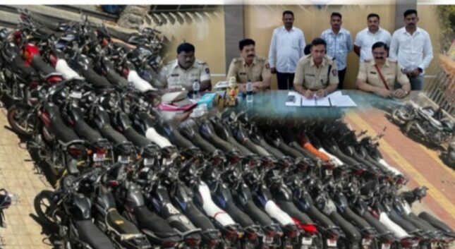 संगमनेर प्रतिनिधी (दि.२९ मार्च):-अहमदनगर जिल्ह्यातील संगमनेर शहरासह आसपासच्या खेडेगावात रोज एक ते दोन दुचाकी वाहनांची रोज चोरी होत होती.परंतु नव्यानेच बदलून आलेले संगमनेर शहर पोलीस ठाण्याचे पोलीस निरीक्षक भगवान मथुरे यांनी तपास करून वाहन चोरांना चांगलाच पोलीसी खाक्या दाखवून जेरबंद केले आहे.संगमनेर येथील तिघांना ताब्यात घेऊन त्यांच्या कडून तब्बल ५१ वाहन हस्तगत केल्या आहे.अक्षय सावन तामचिकर,सुरजित दिलीपसिंग तामचिकर (रा.भाटनगर,घुलेवाडी,ता.संगमनेर) ही दोघे आणि आणखी एक अल्पवयीन मुलाचा सामावेश असून त्यांनी आपल्या गुन्हाची कबुली दिली आहे.यांच्याकडून हस्तगत करण्यात आलेल्या गाड्या ह्या त्यांनी शिर्डी,आश्वी,घारगाव,बोटा, राजूर,अकोले,कोपरगाव,श्रीरामपूर,नेवासा, वावी,नांदुर शिंगोटे,नाशिक, देवळाली,एमआयडीसी,सिन्नर अशा वेगवेगळ्या ठिकाणाहून चोरी केल्या आहेत.त्यांनी गाड्या चोरी केलेल्या गुन्हाची कबुली दिली आहे.जिल्हा पोलीस अधीक्षक राकेश ओला यांनी एक स्वतंत्र पत्रकार परिषद घेऊन ज्यांच्या गाड्या चोरी गेल्या आहेत.त्यांनी गाड्यांचे आवश्यक कागदपत्रे घेऊन यावेत आणि आपली गाडी ओळखून कायदेशिर मार्गाने घेऊन जावी असे आवाहन केले.सदरची कारवाई जिल्हा पोलीस अधीक्षक राकेश ओला,उपविभागीय पोलीस अधिकारी संजय सातव यांच्या मार्गदर्शनाखाली संगमनेर शहर पोलीस स्टेशन निरीक्षक भगवान मथुरे व कर्मचाऱ्यांनी केली आहे.